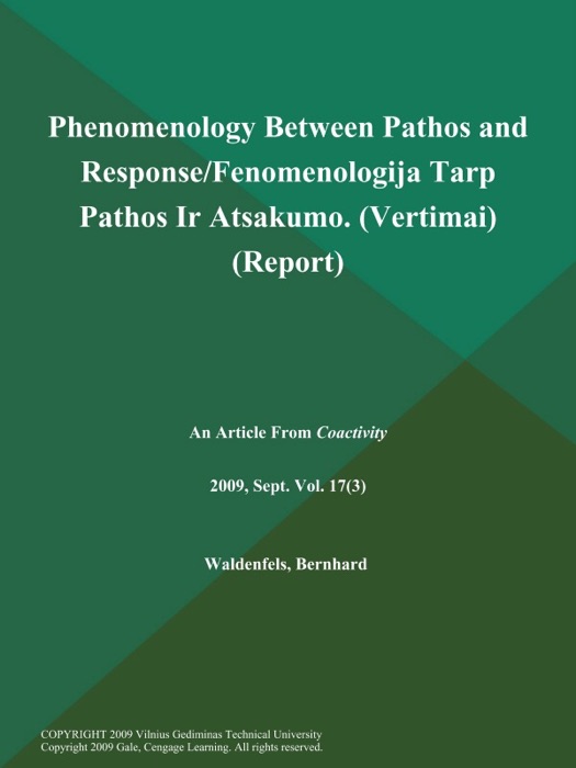 (DOWNLOAD) "Phenomenology Between Pathos and Response/Fenomenologija Tarp Pathos Ir Atsakumo (Vertimai) (Report)" by Coactivity # Book PDF Kindle ePub Free